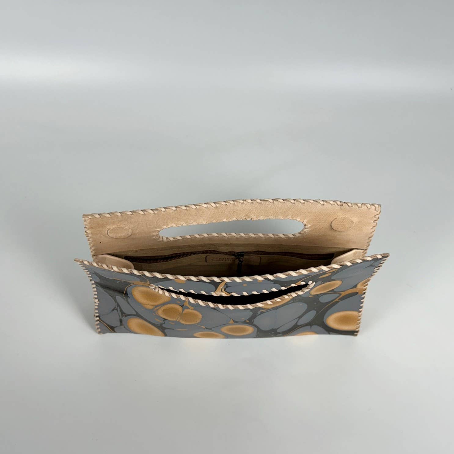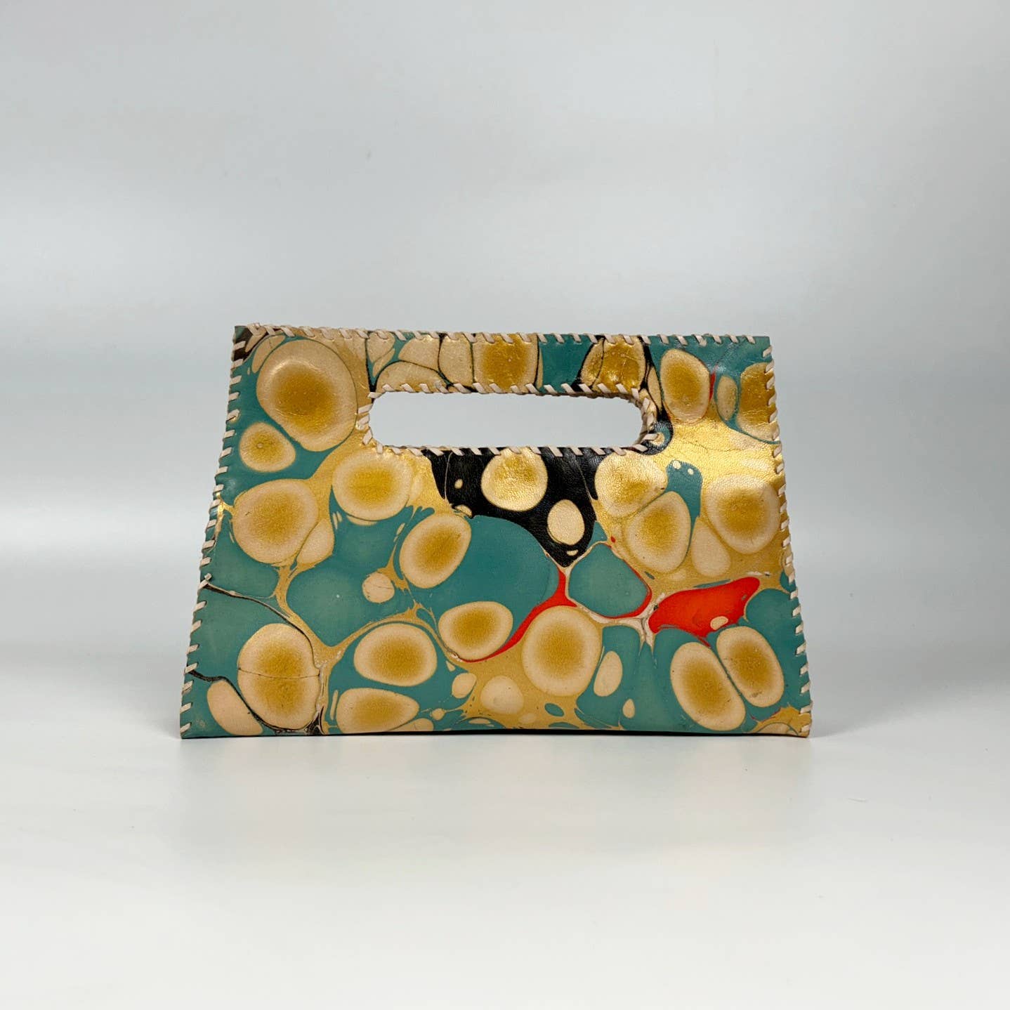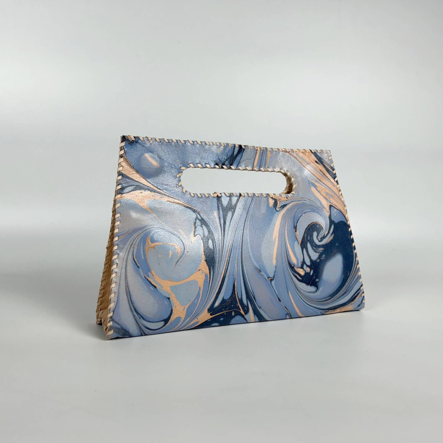 Artisan Handmade crossbody bag with cotton lining. Made with premium suede leather with shimmering finish. Detachable strap so can be used as a clutch. Handstiched using leather strips creating beautiful whipstitch detailing. Magnetic Closure Credit card slots Back slip pocket Adjustable shoulder strap 28" Dimensions: 8"x5.25"